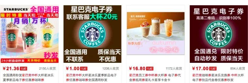 20元中杯券:20元的中杯券稍微麻烦点,店主一般会给你发几个链接,让你帮他拍不同店铺的产品,加起来20元左右,然后他会给你发个星巴克的中杯二维码,就相同于你帮他刷几个不同店铺的订单,他以20元的价格把中杯券给你。