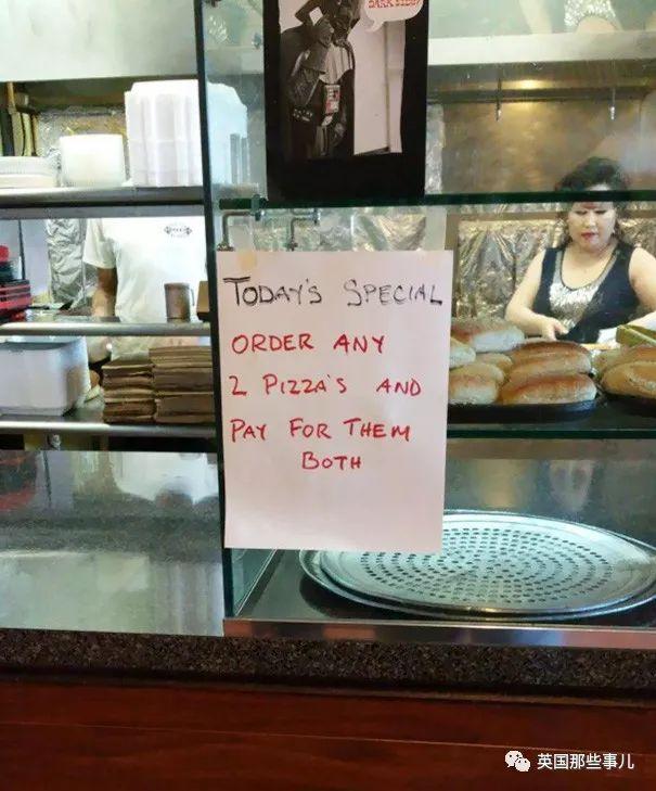 披萨店的告示上写着,