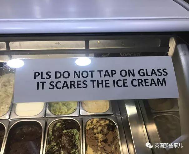 “请不要在玻璃上敲敲打打,会吓到冰淇淋哒。”