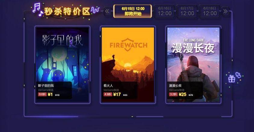 最刺激的特价秒杀环节,绝对是最考验手速的时刻!活动期间,每天12:00-14:00和20:00-22:00两个时段,将有3款游戏参与限时秒杀,价格低至1元起!为期4天的活动中,每天参与限时秒杀的游戏均不相同,其中不乏《去月球》、《影子里的我》、《战场的女武神》、《隐龙传:影踪》等口碑佳作。