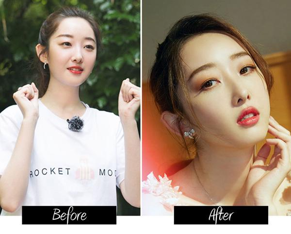 热巴的双眼大而有神,然而笑起来却会有特别明显的眼袋,用“赤茶眼妆”后,双眼增添了迷人色彩,眼周立体、明亮了。