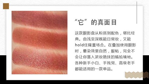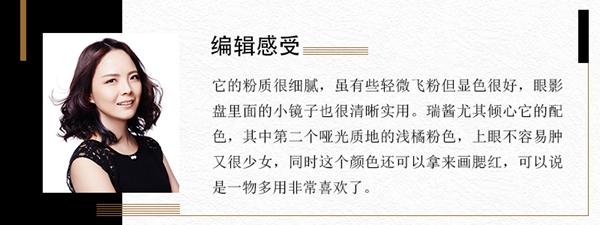 它只有瑞酱半截手指那么高,拿在手里是十分小巧的,里面的眼影粉却是每个颜色很大一块。是酒红盘的配色又打破常规,第二个颜色有着橘色的调调,还可以拿来做腮红,第一个颜色还可以画卧蚕,瑞酱很喜欢。