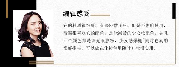 “它”十分小巧,只有手掌一小半大。四个颜色都是珠光质地的眼影粉,配色十分的小清新,很适合少女感十足的年轻姑娘日常使用,可以说是减龄配色了。同时,真的很好携带。