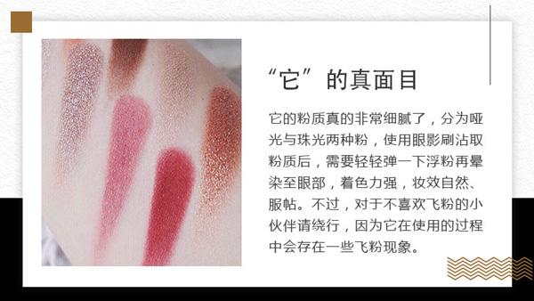 这款眼影与以往的塑料盒眼影不同,它是纸盒的,对里面的眼影粉有保护作用,掉在地上眼影粉也不容易碎掉,非常适合整天犯迷糊的瑞酱了。不得不说的还有它的每个颜色都是好大一块,真的可以用炒鸡久了。
