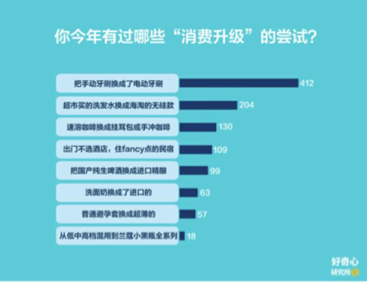 在各种标签中成长,互联网原住民、空巢青年、丧文化……以往的三观标准和消费观念,早已不适用于我们。通过调研数据,世界仿佛后知后觉地顿悟,当代青年的购买力正在飞快地提升。在过去一年里《好奇心日报(www.qdaily.com)》的报道和好奇心研究所的调查里,我们发现年轻人的消费习惯也越来越中产阶级化了。