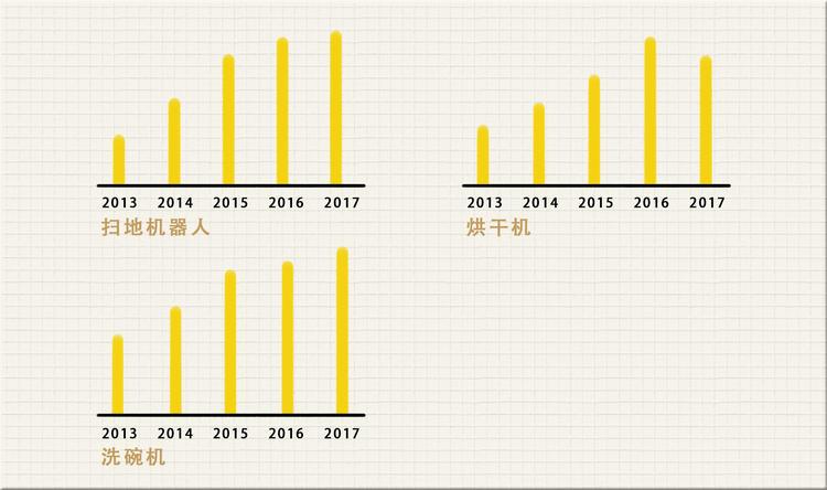 2016 年中国洗碗机销售额达到 19.8 亿元,同比增速达到 104.8%。调查公司 GFK 数据显示, 2015 年扫地机器人在中国的销售额为 50 亿元,到了 2017 年有望达到 75 亿元。