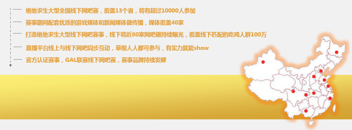 本次GALS2的海选赛阶段从5月19日开始,一共分为两个阶段。在第一阶段的海选中,75家网吧的大门将为所有绝地求生爱好者敞开!在规定时间内,你和你的小伙伴需要进行三场四人组排模式的亚服官方匹配赛,比赛成绩以三场的最佳排名为准,排名最靠前者即可晋级。如果当天的吃鸡战队太多,我们将进一步比较三场比赛的总成绩,以及每场比赛的击杀数目。