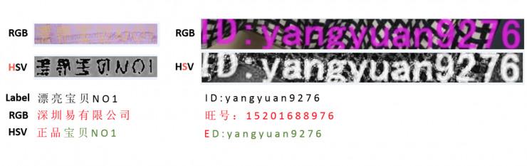 RGB+HSV 主要用来解决通用 OCR 的一些问题,比如复杂的背景。一些通过人的眼睛看不清的图片可以通过 HSV 凸显出色调的差异性,从而就能正确识别。