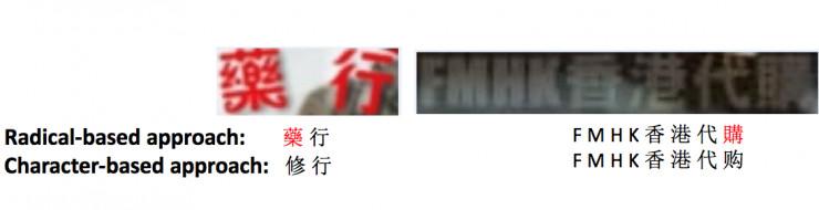 如下图所示,由于图像都是基于真实场景,所以出现了「薬」和「購」这样的繁体字。虽然一般的语言模型,能够将「代購」识别成「代购」,这在语义上是对的,但其实还是存在问题。通过 RAN 网络,就能很好地解决这里的 OOV 问题,正确识别出繁体字。