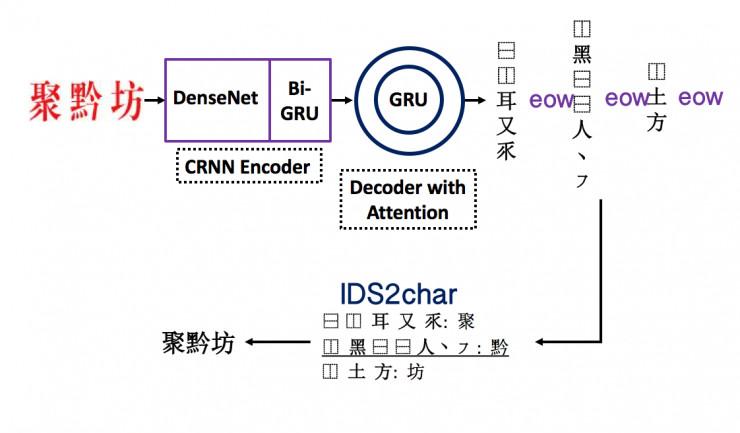 他们对 RAN 网络的改进还有一点,以前的网络是针对单字识别,模型的 encoder 只有一个 CNN,这一次的任务是文本行识别,为了建模文本的常识信息,他们在 encoder CNN 之后添加了一个双向 RNN 网络。另外,从单字识别到文本行识别,对于模型来说,这两者的隔阂不是特别大,在这里用来提取偏旁部首的注意力机制还可以区分字和字之间的间隔,实际上只需要在每个字的偏旁部首中间加上标志符。