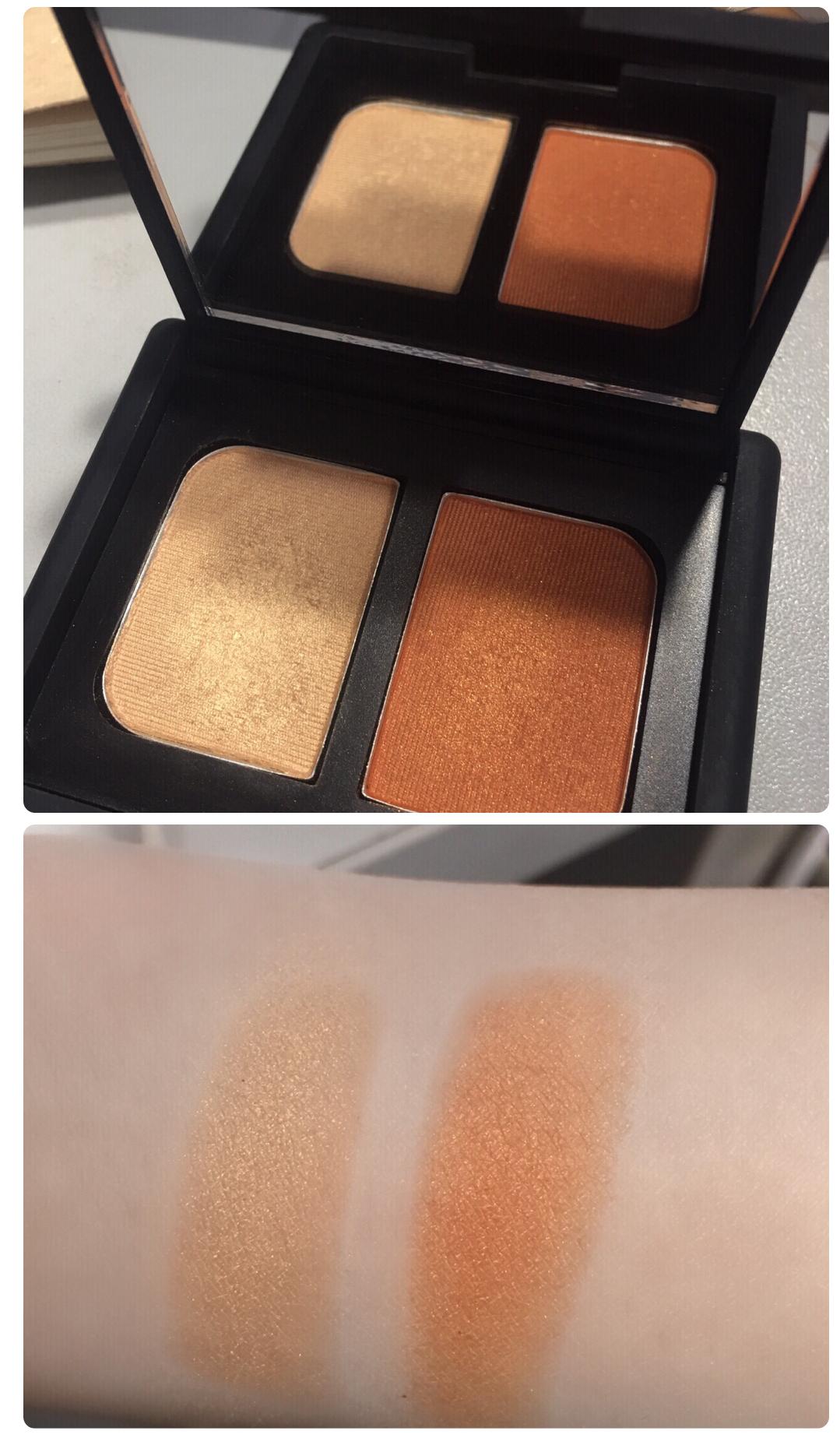 nars这盘粉质不错,微微飞粉,右边的橘色显色度很好,也算是南瓜色的感觉。