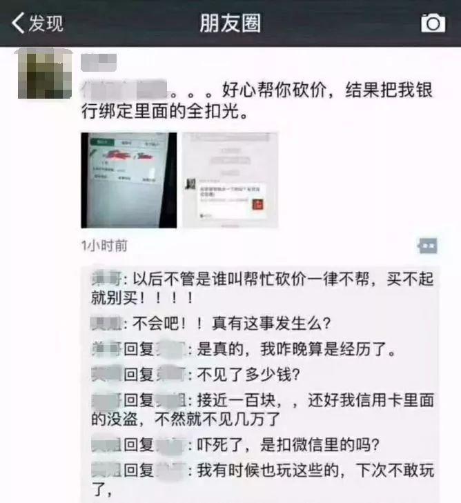 市民李先生说,他也是朋友圈砍价的受害者。日前,他看到一个朋友发的帮忙砍价链接,出于给朋友帮忙,自己没有多想就点了进去,并输入了自己的手机号码,页面也显示“你已帮朋友砍了XX元”。之后,李先生身边的许多朋友都收到了一条留着李先生名字的诈骗短信。李先生怀疑,自己和朋友的信息,就是这次“砍价”活动泄露出去的。