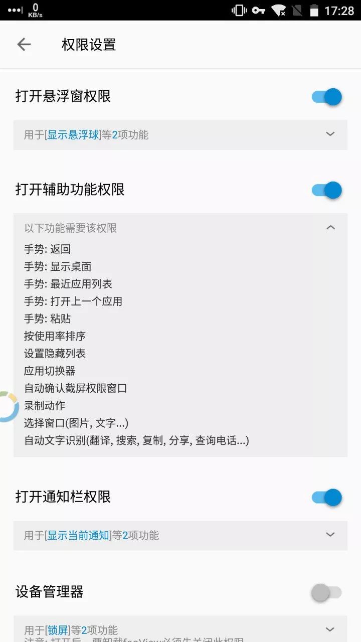 其中,悬浮球的部分手势操作、排序、应用切换、文字识别等功能需要依靠辅助功能才能启用。FooView 悬浮球是通过无障碍服务执行返回以及回到桌面等操作。因为自定义按键也是无障碍服务的另一大用处,能实现类似功能应用有我派介绍过的 Button Mapper,甚至在三星手机上你也可以自定义某些按键,比如,三星上的 Bixby 键。
