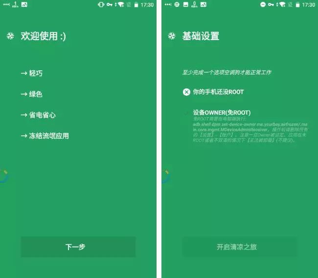 注意,空调狗需要先经过 ADB 或者 Root 授权才能开始使用,锁屏冻结的特性依赖无障碍服务。