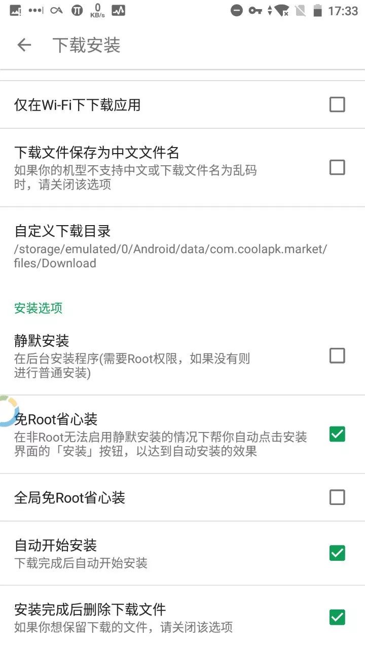 所以为了实现自动安装更新的功能,酷安面向普通用户推出了免 Root 省心装的功能。其原理就是通过无障碍服务监听活动,当出现安装页面时就帮你点一下安装。免 Root 省心装的还有一个特点就是点击一次更新所有应用,像 Google Play 上更新应用一样地方便。