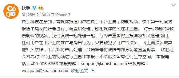 快手有关负责人也表示,记者提到的问题,“在多个网络平台都有出现,快手科技已经有配套解决措施。”
