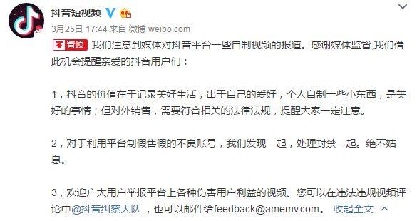 3月25日,@抖音短视频 也在微博发表声明: