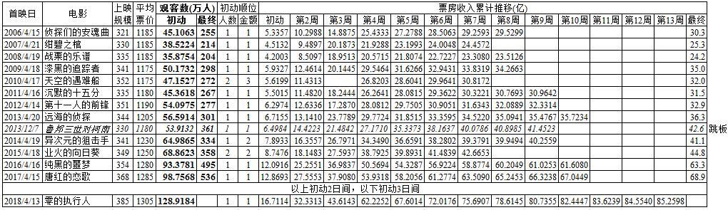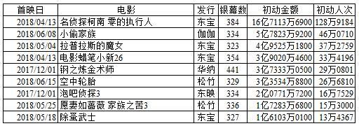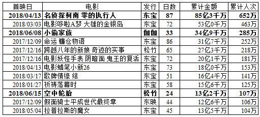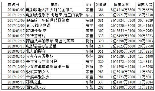 注:《面包超人》和《超人剑客》初动为双休日2日间,其他初动为星期五到星期日的3日间。