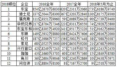 日本主要12大电影发行商所发行作品最近三年间票房收入: