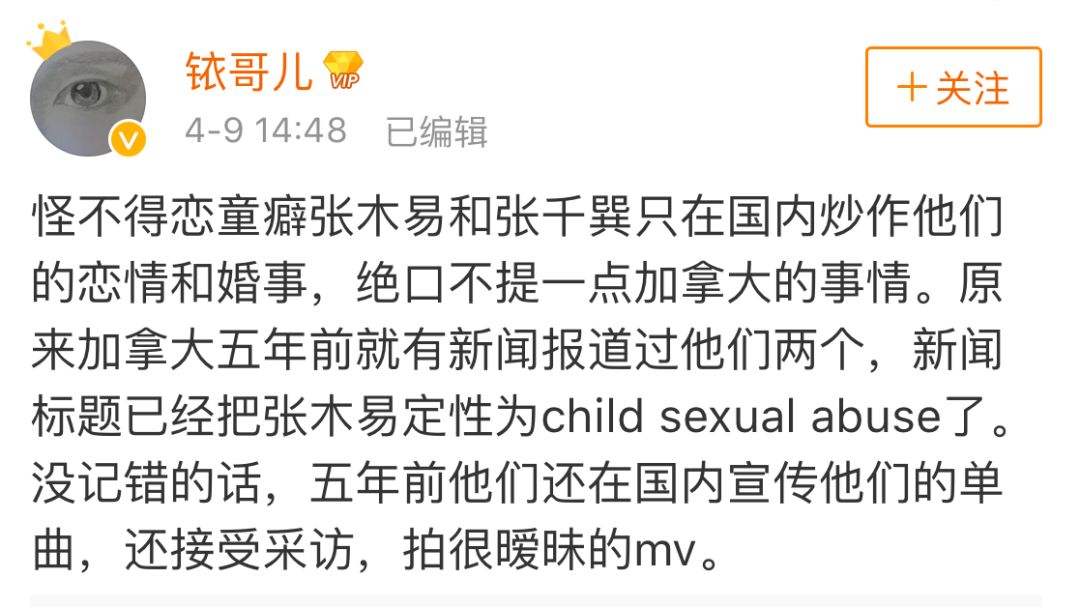 有博主扒出,早在五年前,加拿大就有人举报过他俩,外媒的标题直接写张木易涉嫌“儿童性侵犯”。