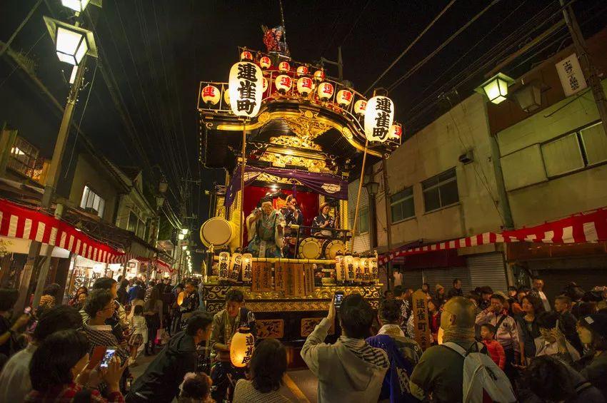 「川越祭」始于十七世纪中(1648年),也是日本的无形民俗文化财之一,每年10月第三个周末假日就是传统的传承日,豪华的山车──神轿在江户藏造町街中来回巡行,火力十足吸引四方游客屏气凝神。