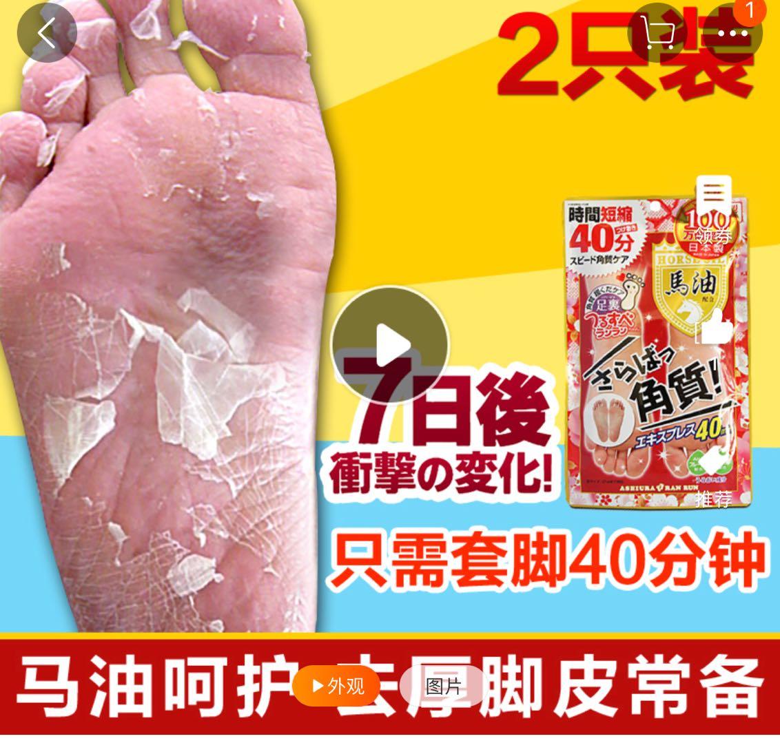 可是我真的很好奇,脱皮脱脚底,谁没事看得到你的脚底啊。我又在某宝上看了一下这个产品,用的人好像还蛮多,价格不算便宜,两只装都要卖五六十。