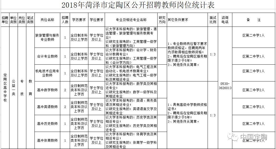 昨天,定陶区人民政府网发布《2018年菏泽市定陶区部分事业单位招聘简章》和《2018年菏泽市定陶区公开招聘教师简章》。