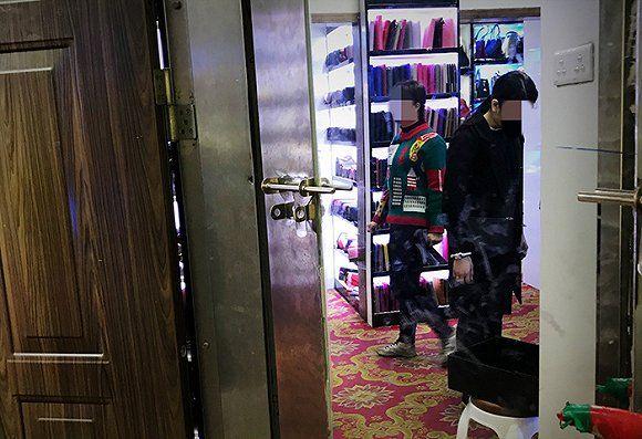 阿梅将记者带到皮具城的11楼,在一间没有门牌号的房间外停下。门口有名男子正低头玩着手机。阿梅向他使了个眼神,再抬头看了看门梁上的监控摄像头,男子起身把门拉开。