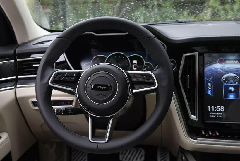 车内的全液晶的仪表盘拥有4种显示模式可选,三幅式多功能真皮方向盘