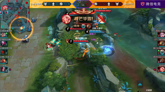 第二轮对战,企鹅无情的武则天在争夺第一个暴君的时候秀出操作智取三杀。*牙虎**叶晨的盾山非常灵活,一“手”“抱”了三个人,处处保护己方输出。方惜花木兰超强细节处理强势压制全局,*牙虎**关羽一命换关键主宰逆风翻盘。