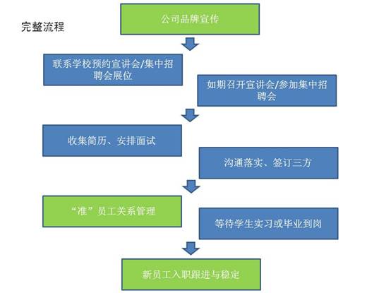 (一)大家看出区别了吗?校招,其实是在做产品,这个产品就是你自己公司的品牌本身,不论大小,需要看到的是态度。因此,在确定好内部岗位需求、学校定位等基本前提之后,接下来的行动不是联系学校及等着宣讲会,而是品牌宣传,或者可以这么说,在确定需要校园招聘的时候就应该开始品牌宣传,很多公司前一年就在做第二年度的校招宣传,因为宣传并不一定能在很短时间就出现效果,尤其是小一些的、知名度并不算大的公司更是需要"先飞"。
