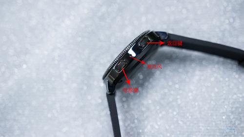 背面为心率传感器,两边分别为防水和抗压孔,Gear Sport防水等级为50米。