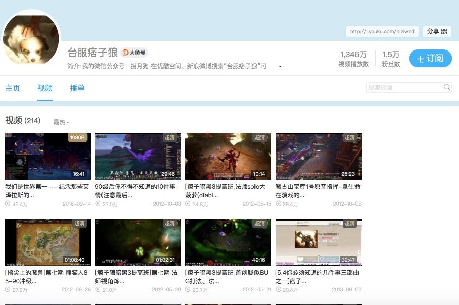 于是痞子狼开始制作游戏解说视频上传到视频平台,后来发展为《指尖上魔兽》、《指尖上暗黑》等系列视频。在优酷上,痞子狼总共上传了 214 条作品,总*放播**量超过 1300 万。在有关注后,痞子狼在视频以及一些相关平台上给自己的「捞月狗」宣传了一波。