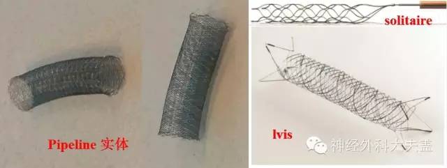 下图是密网支架(pipeline栓塞装置)和普通支架的真实照片对比图