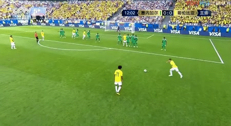 第12分钟,哥伦比亚获得前场任意球,金特罗左脚直接轰门,皮球直奔球门左下角,恩迪亚耶把球扑出底线。