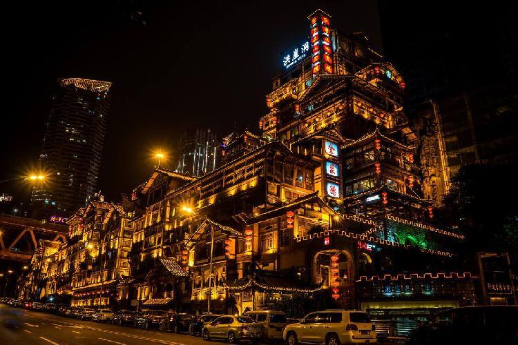 2.从解放碑乘坐观光巴士前往洪崖洞特色风情街,观赏巴渝传统民宿风情,享受来自重庆各地的美食小吃。