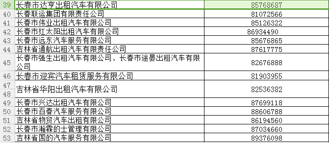 长春市各家出租车企业监督电话是多少?