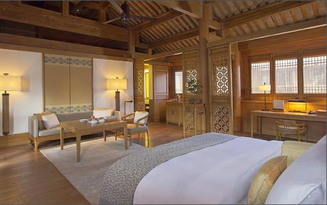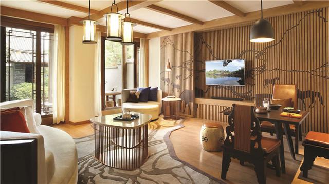铂尔曼度假酒店紧邻束河古镇,配备有水疗中心、私家图书馆、高档餐厅、会议室、水吧等一切奢华度假酒店应有的设施,却只需要1500元就可以入住200平米的别墅套房,还拥有私密的小型泡池,性价比高到难以置信。