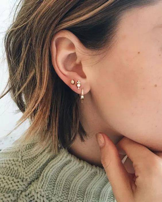 耳钉一直是很多走简约搭配路线姑娘们的首选,因为比起夸张的大耳环,耳钉来得更加精致耐看。