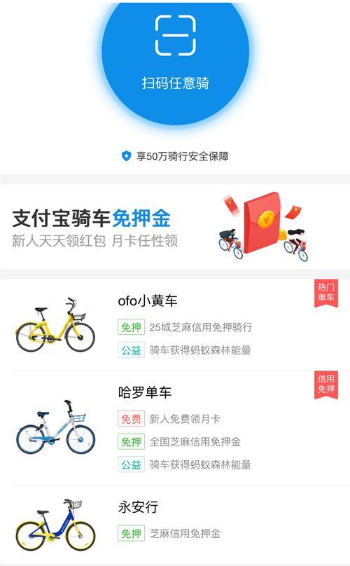 一是通过芝麻信用分,分数达到600及以上可以免押金,涉及企业包括ofo、哈罗、永安行等,不同企业有不同的信用分要求。这也是目前共享单车平台推行免押金主要运用的途径。