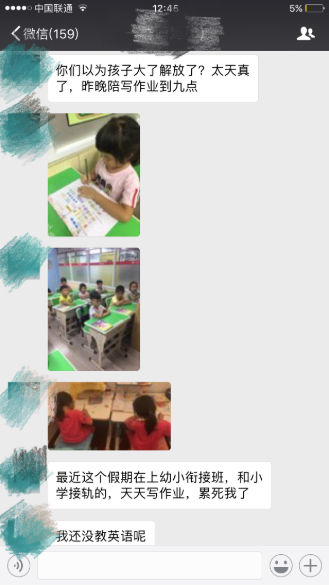 “据我了解,我们班上的孩子去参加幼小衔接班的相对较少,刚开始第一学期差异会比较明显,第二学期就不是非常明显了。每个孩子的潜力激发点在不同阶段,一般小学生的能力激发在后半程,家长应寄予孩子合理的期望值,不用过度紧张。”