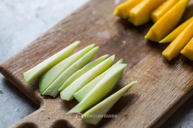 如果买不到内外全青的酸芒,勉强可以用没熟透的芒果替代。果肉够生,还保有酸脆度的话,腌起来也能蒙混过关,但如果已经熟到发软,直接蘸料吃是它最好的归宿!