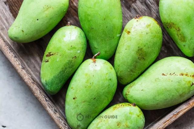 越生越适合做甘草水果。生到什么程度?跟常见青芒切开对比,就知道了。