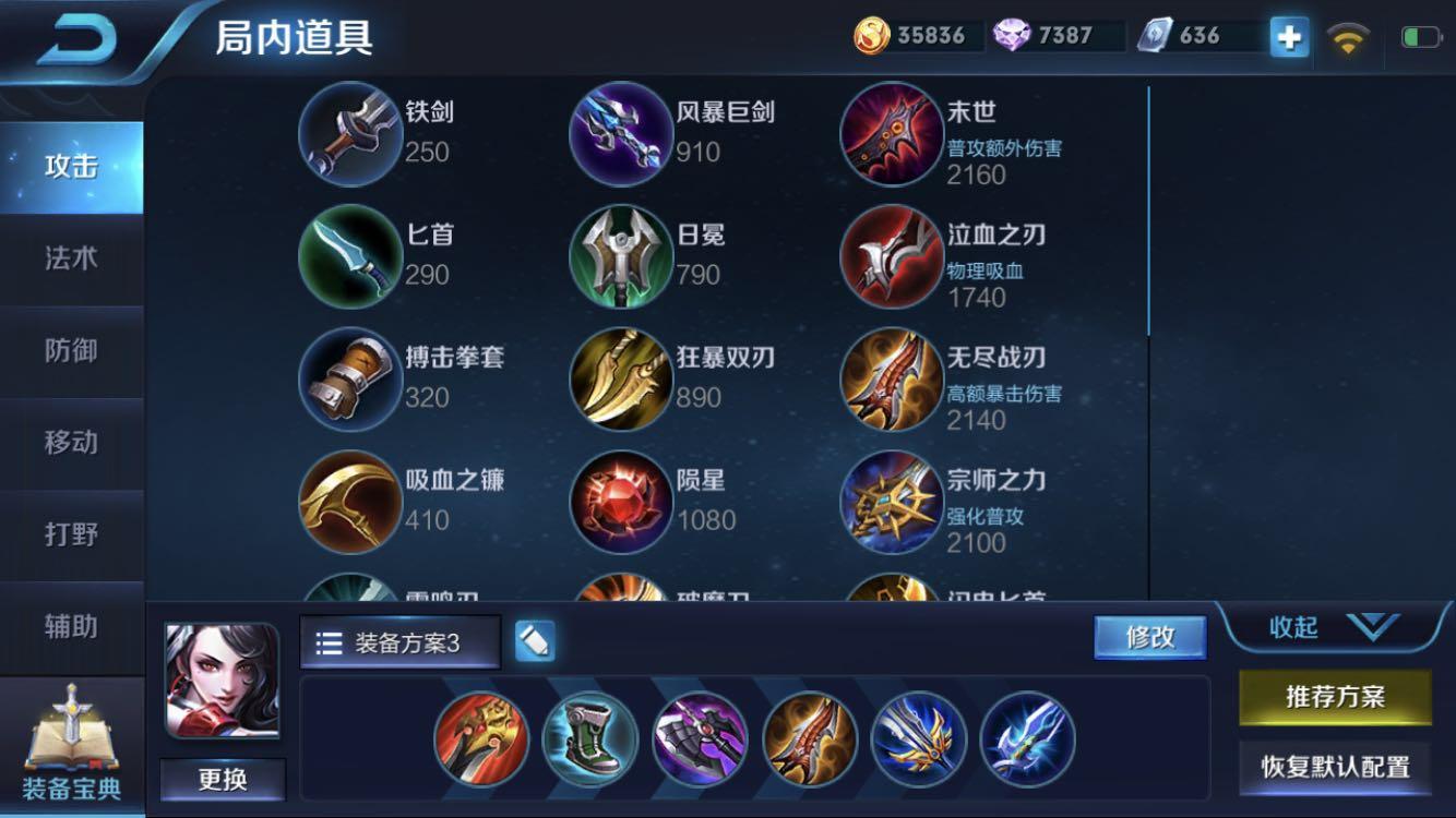 无尽战刃对阿轲的伤害提升是最大的,破军是为了可以更加轻松的收割残血。后期发现打不动坦克的时候可以将暗影战斧换做碎星锤,*刀名**司命换成复活甲。