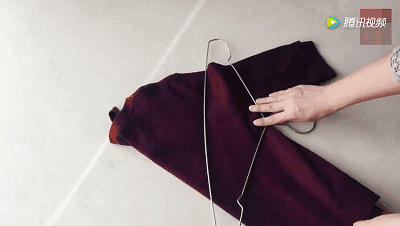 毛衣挂着肩膀处总是容易变形,你该学学这样的挂法。洗完的衣服对折一下,衣架放置在袖子腋下的位置。