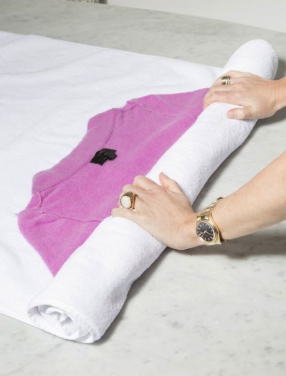 如果你要放在抽屉或者衣物收纳箱中,可以把毛衣卷起来立放,这样毛衣受力面积小不容易压坏,而且不会有折痕了。