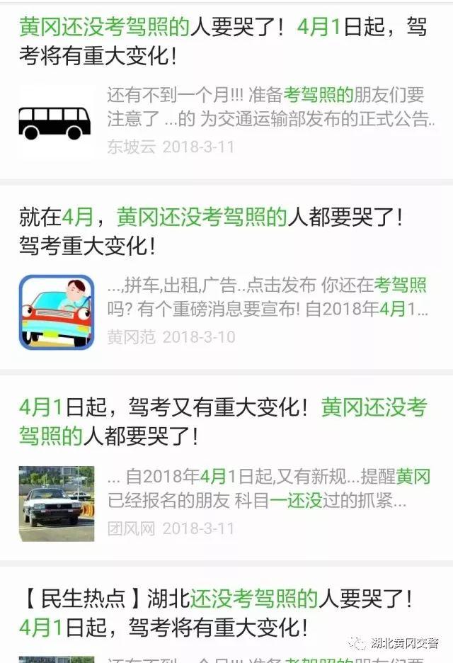 最近,一则关于“黄冈还没考驾照的人要哭了!4月1日起,驾考将有重大变化!”的消息在微信朋友圈被疯狂转发...