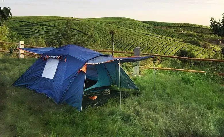 到了晚上,茶山露营的感觉简直不要太爽。茶山旁可以露营,在星空下睡去,在茶香里醒来。