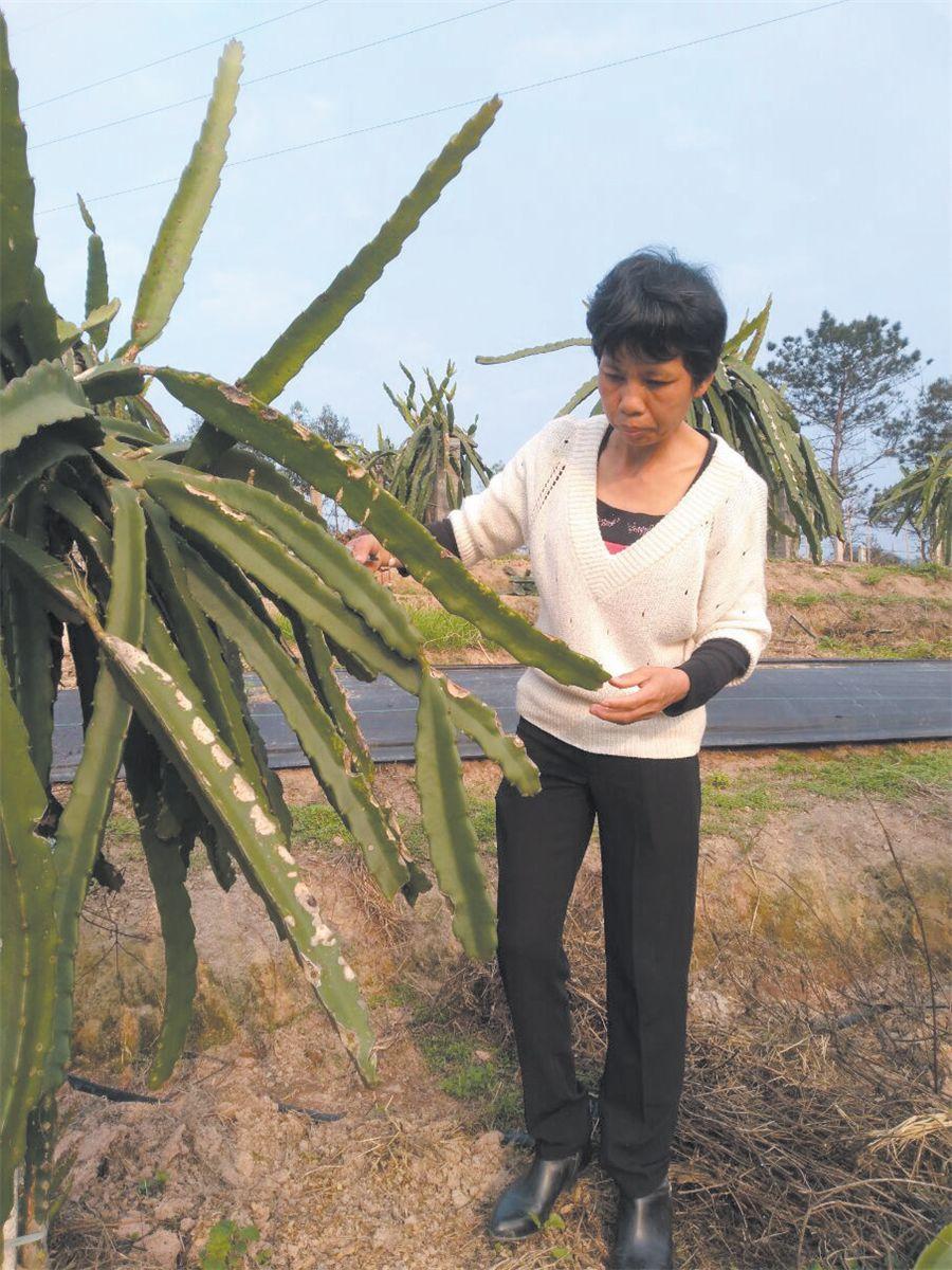 简单喝了几碗粥,黄丹和丈夫到屋旁的火龙果园剪苗。“天暖又刚施肥,一个晚上就能长一节,跟男人的胡须似的天天要修剪。”黄丹边剪果苗边和记者说。