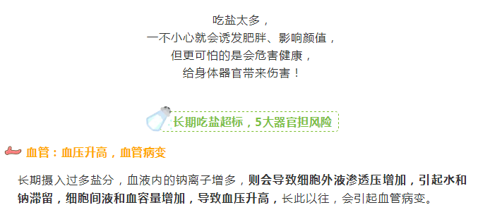 饮食中绝大部分的盐分都是从肾脏代谢的,如果长期大量的摄入盐分,那么将会给肾脏带来巨大的负担。肾脏长期地超负荷运转,日积月累就会发生病变。